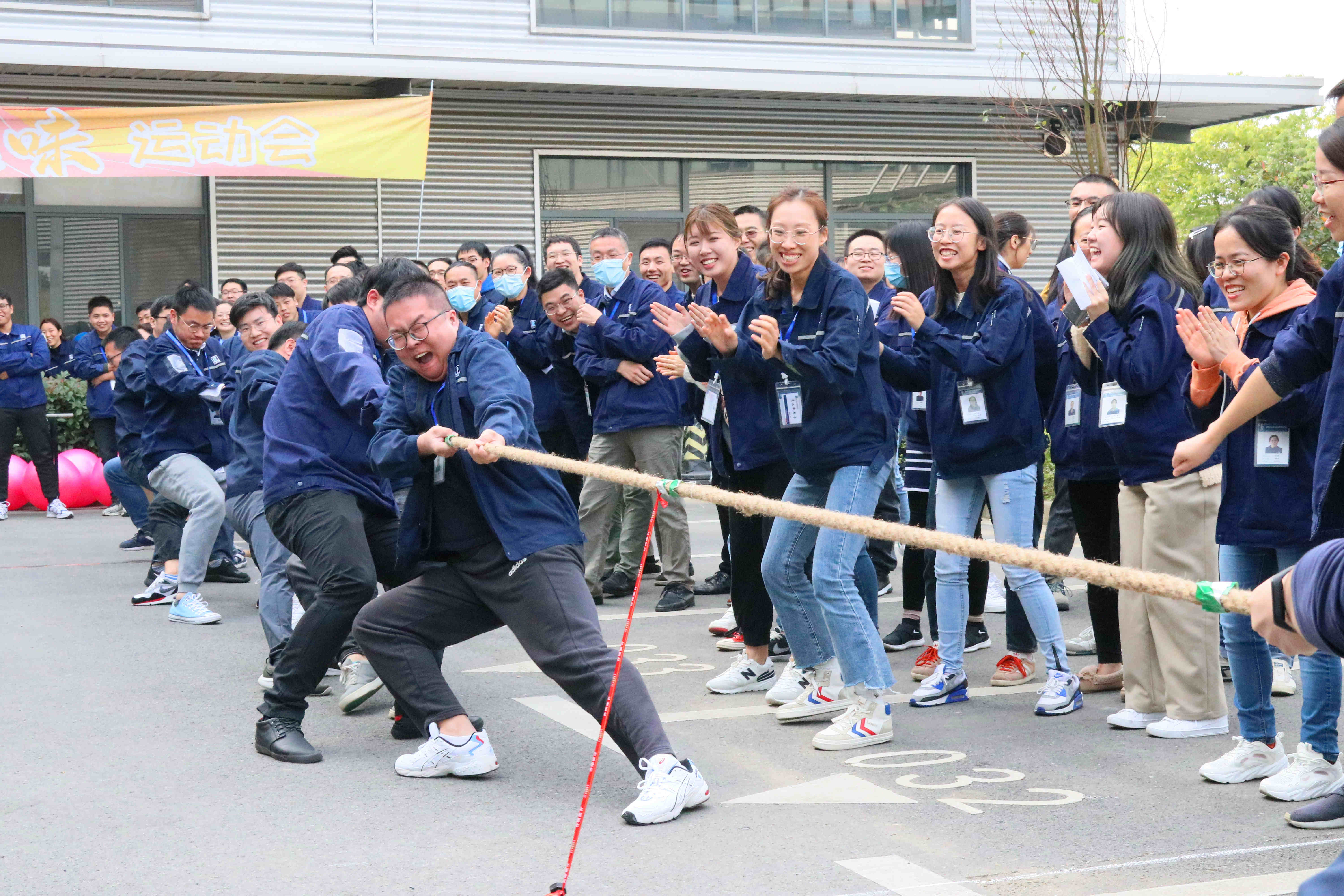 說起運動會,當然少不了考驗團隊合作的拔河啦。為了公平公正,生產(chǎn)部門與其他部門各占據(jù)一方天地,如火如荼地進行PK,場上有雙方勢均力敵的,也有不到三秒就結(jié)束,連快門都來不及按下的。在啦啦隊們清脆嘹亮的加油聲中,最終決出了勝負,讓我們?yōu)樗麄兯蜕蠠崃业恼坡暋?/span>